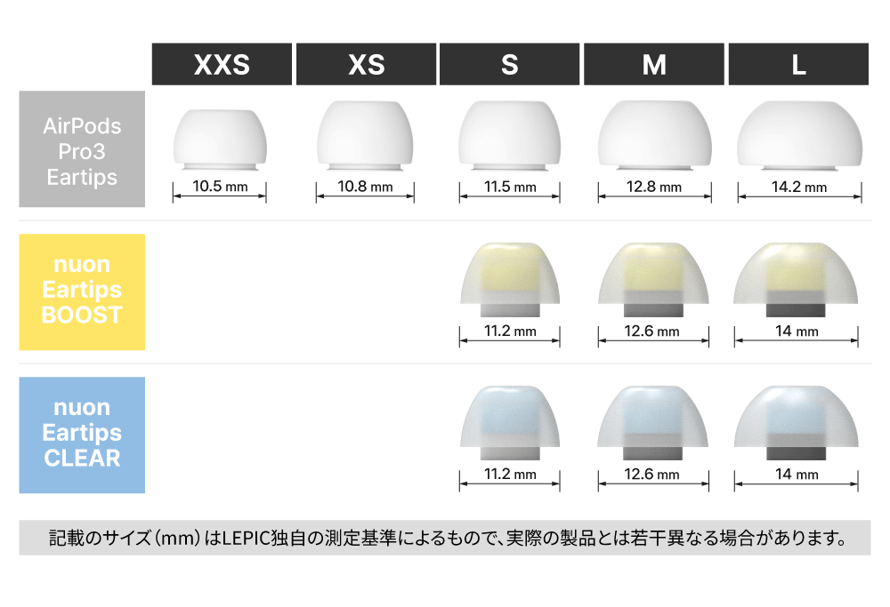 LEPICはこれまでのイヤーピースを、確実な耳への固定を目的とした「第1世代イヤーピース」、素材や形状の研究によって着け心地や音を飛躍させた「第2世代イヤーピース」と定義しました。nuonはこれらの特徴を兼ね備えながらも、自然に声を強調する「ボイスブースト」機能や「空間音響の強化」を実現する「第3世代イヤーピース」として誕生しました。nuonは“真の次世代イヤーピース”です。