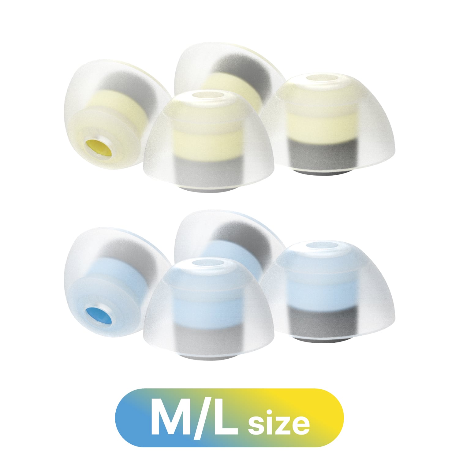 nuonの名前は「new + 音 (新しい音)」に由来します。独自のサウンドウェーブドームによって、様々な音の変化を自在に実現する空間音響技術をはじめ、密度の異なるシリコンを3層重ねるハイブリッド設計や、イヤーピース専用に完全新規開発されたシリコン素材を使用するなど、nuonはまさに次世代型のイヤーピースです。